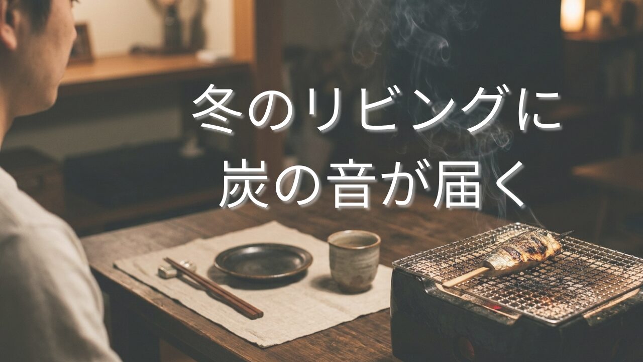 炭の爆ぜる音が、リビングの隅まで届いている。冬の空気が窓の下に溜まり、部屋の上と下で温度が分かれている。鍋の蓋が、テーブルの端で少し湯気を立てている。