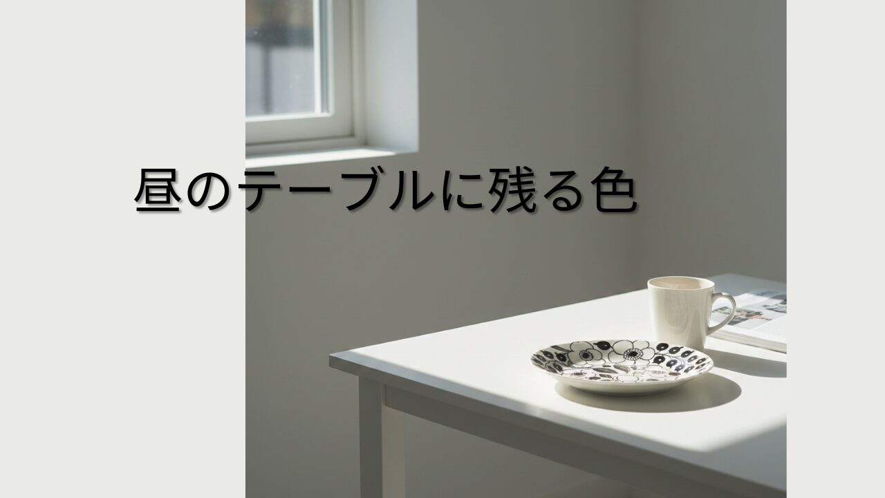 昼下がり、テーブルの上に皿が置かれている。